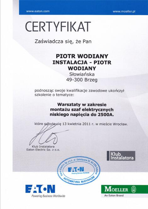 - Świadectwo kwalifikacyjne SEP E i D, eksploatacja i dozór w zakresie obsługi, konserwacji, remontów i montażu urządzeń, instalacji i sieci elektroenergetycznych wytwarzających, przetwarzających, przesyłających i zużywających energię elektryczną: